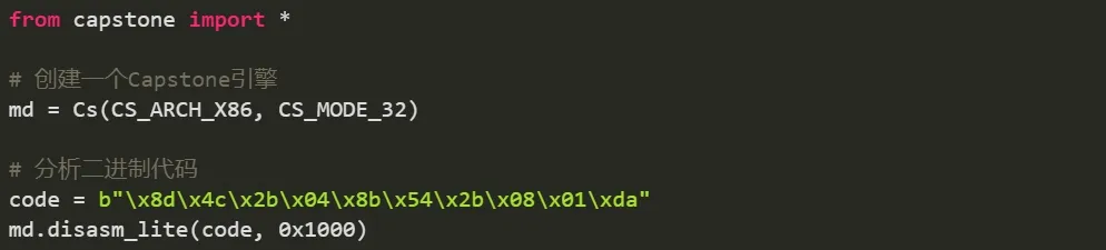 示例:使用capstone库进行二进制代码分析。