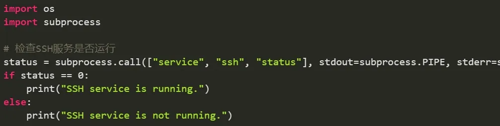示例:使用os和subprocess模块检查系统服务状态。