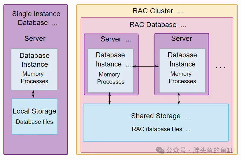 这里的集群主要是在实例级别提供高可用,即集群内部分实例故障,不影响数据库提供服务。但在RAC架构中仍可能有存储的单点故障,因此存储侧也应该实现高可用。当然在集群之上也可以和主从架构配合使用,提供异地容灾能力。