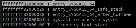 比如先查看 entry_SYSCALL_64函数的基地址为 0xffffffff82000000