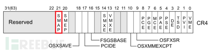 SMAP(Supervisor Mode Access Protection)是一种用于保护操作系统内核的安全技术。它与SMEP相似,都在CPU中开启一个比特位来限制内核态访问用户态的能力。它使用户态的指针无法被内核态解引用。这样即使攻击者成功执行了恶意代码,也无法绕过系统安全保护读取内核空间中的敏感信息。判断CR4寄存器的值来确定是否开启,当CR4寄存器的值第21位是1时,SMAP开启。