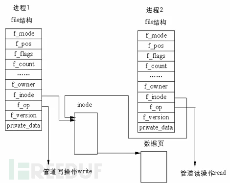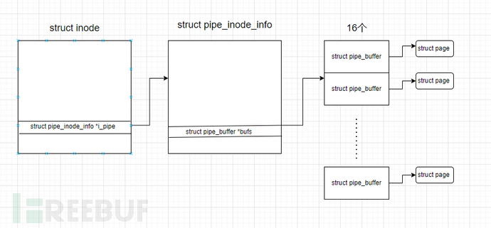 前置知识:pipe管道Linux内核中,管道本质是创建一个虚拟的inode(即创建一个虚拟文件节点)来表示,其中在节点上描述管道信息的结构体为 pipe_inode_info(inode->i_pipe). 其中包含一个管道的所有信息。当创建一个管道时,内核会创建 VFS inode,pipe_inode_info结构体、两个文件描述符(代表着管道的两端)、pipe_buffer结构体数组。管道原理的示意图列。