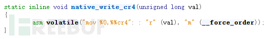 但是在kernel 5.x版本中native_write_cr4函数被添加了commit 增加了对CR4寄存器的判断,如检测到了修改就还原CR4寄存器的值,不在是之前那种简单的汇编形式了,像以前一样简单调用函数关闭SMEP和SMAP将不在可行。