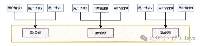 举个例子,假如我们在秒杀100个商品,那么常规做法就是一个锁,锁 100个商品,那么分段的意思就是,将100个商品分成10份,相当于有 10 个锁,每个锁锁定10个商品,这也就提升锁的性能提升了10倍。
