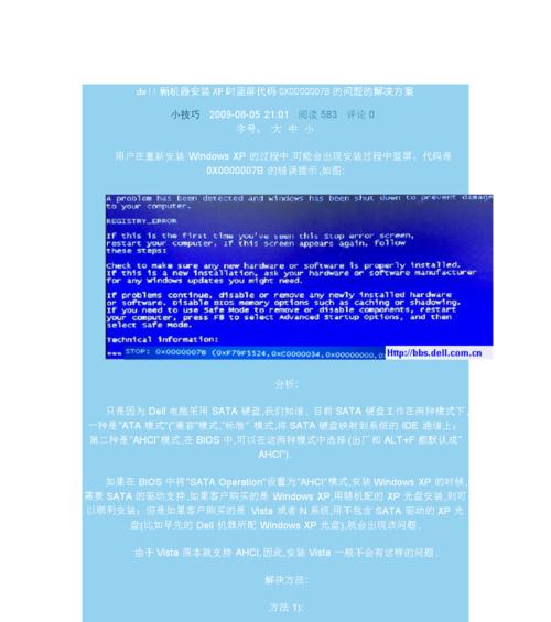 解决电脑蓝屏代码0x0000007b的方法(探索0x0000007b电脑蓝屏代码的原因和解决方案)