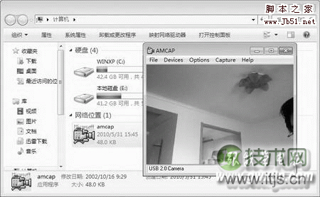 假设找不到Windows 7版摄像头自用驱动,或许觉得上面的配置很费事,也可以够直接下载 amcap紧缩包(下载地址:http://www.shudoo.com/bzsoft),解压后将amcap.exe文件 拷贝到Network Shortcuts文件夹即可,重新启动系统后,进入“计算机”窗口,此时 可看到一个摄像头图标,执行后可翻开视频预览画面(图3)。