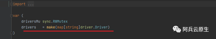 可以看到在sql包里面有一个全局map,里把存放了mysql这个名字的driver