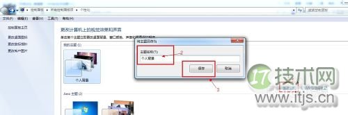 我们还可以给我们刚才做的主题命名。点击保存后返回到个性化页面,找到我的主题,点击后面的保存,输入自己想好的名字,然后点保存即可。