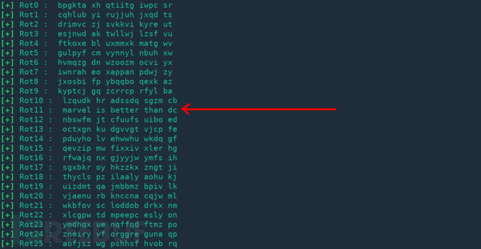 我们可以使用--rot选项来提供偏移量,或者使用--rot all命令来告诉Decodify使用1-26偏移量来解码目标字符串。
