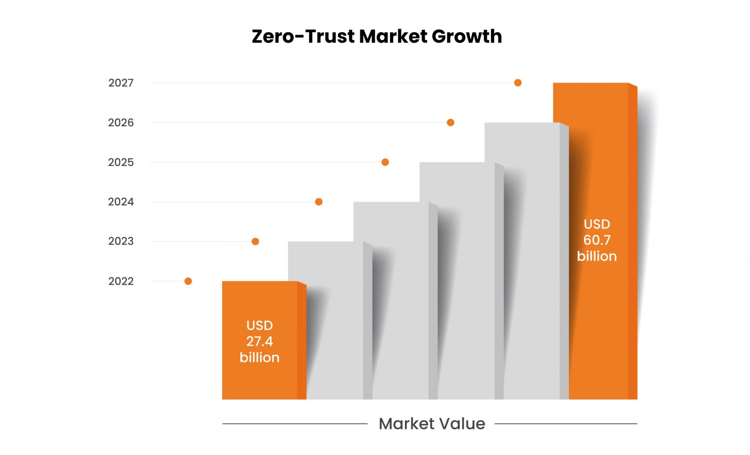 研究估计,零信任市场将从 2022 年的 274 亿美元增长到 2027 年的 607 亿美元,2022 年至 2027 年的复合年增长率 (CAGR) 为 17.3%。