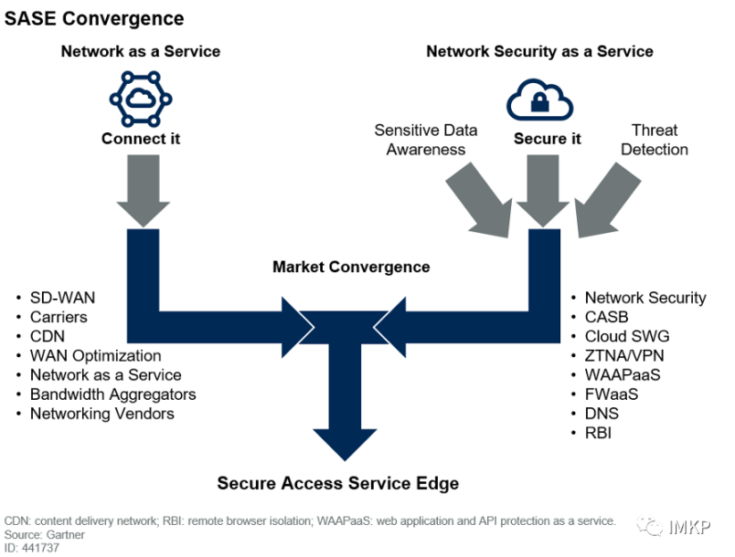 根据Gartner的定义,SASE(安全访问服务边缘)是一种新兴的服务,它将广域网与网络安全(如:SWG、CASB、FWaaS、ZTNA)结合起来,从而满足数字化企业的动态安全访问需求。SASE 是一种基于实体的身份、实时上下文、企业安全/合规策略,以及在整个会话中持续评估风险/信任的服务。实体的身份可与人员、人员组(分支办公室)、设备、应用、服务、物联网系统或边缘计算场地相关联。