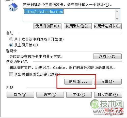 然后在IE选项中,我们会看到IE临时文件的选项,然后我们点击“删除”。