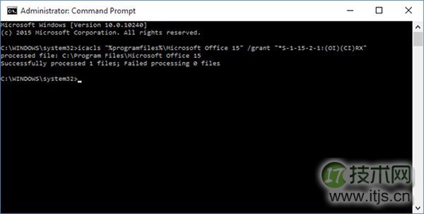 icacls "%programfiles%Microsoft Office 15" /grant *S-1-15-2-1:(OI)(CI)RX